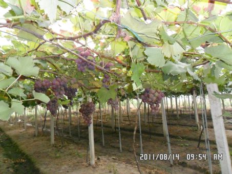 The utility model is mainly suitable for covering grape, and can also be used for common greenhouse covering such as vegetables.