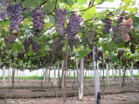 The product is made of excellent PE and imported functional additives by three-layer co-extrusion blow molding with IBC system. The utility model has the advantages of long service life, remarkable flow drop effect, high light transmittance, high temperature resistance, etc. . At the same time, according to the needs of grape growth, the use of a selective light through the different wavelength of auxiliaries, can make grapes bright color, full fruit, sweetness increased. Service Life ≥12 months (thickness ≥0.06 mm film) , flow retention ≥3 months, light transmittance ≥85% , fog ≤35% .